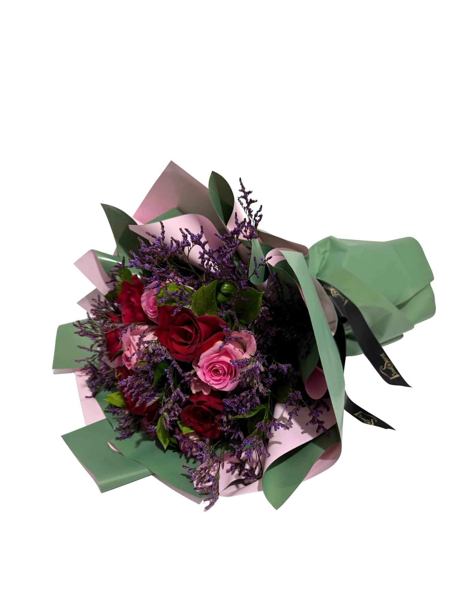 Featuring rich red roses paired with soft pink roses and finished with delicate limonium, this arrangement reflects warmth, purity, and heartfelt emotion. Wrapped in elegant pastel green packaging with Flowsent’s signature finish, Lovely is perfect for Valentine moments that feel sincere and deeply meaningful, with flower delivery available across Cairo and Giza.