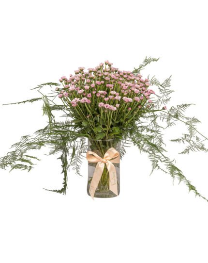 Experience the tender charm of Soft, a bouquet that celebrates simplicity and gentle elegance. With a graceful arrangement of pink Regan Chrysanthemums surrounded by airy greenery, this design brings a soothing, romantic touch to any space. Perfect for expressing subtle affection or adding a soft, calming vibe to your moments.