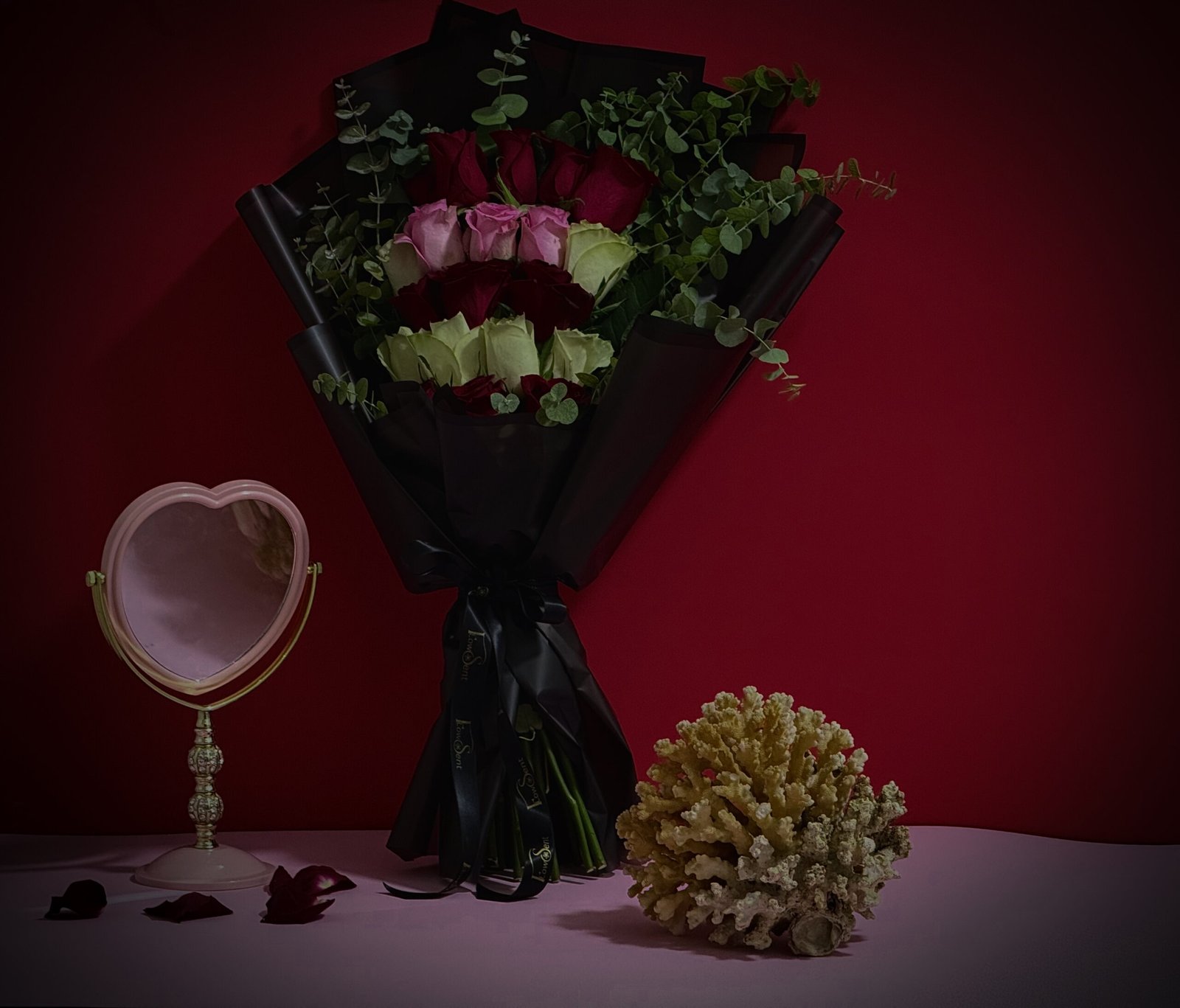Flow is designed to express love effortlessly — where emotions move naturally, creating a calm yet meaningful Valentine’s bouquet. Finished with fresh eucalyptus greenery, this arrangement delivers timeless elegance, with flower delivery available across Cairo and Giza.