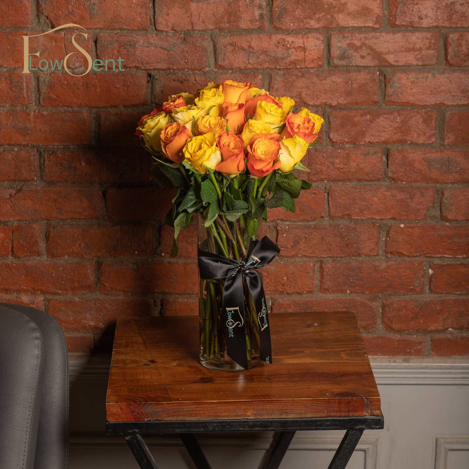 Like the final glow of a summer day, Sunset blends vibrant orange and sunny yellow roses in perfect harmony. Each stem is carefully chosen to create a lively yet elegant display, bringing warmth and cheer to any space. This bouquet captures the beauty of golden light and the feeling of pure happiness.