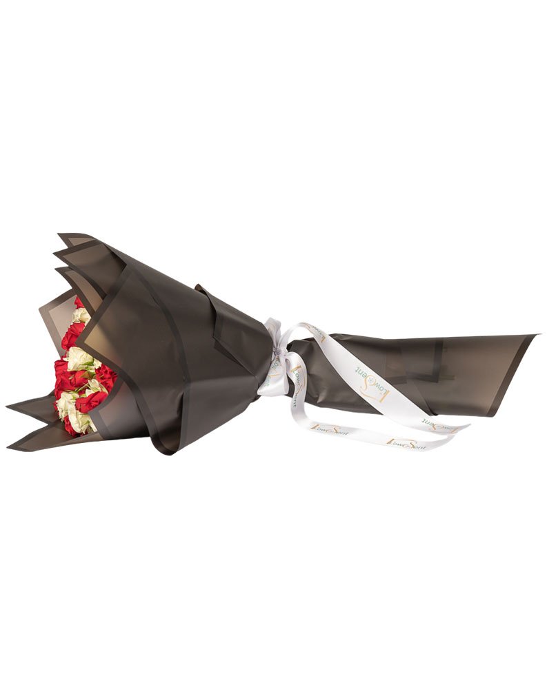 A bouquet where romance meets elegance — pure white roses blend gracefully with deep, velvety reds, creating a striking contrast that speaks the language of love. Perfect for making unforgettable moments and heartfelt declarations.