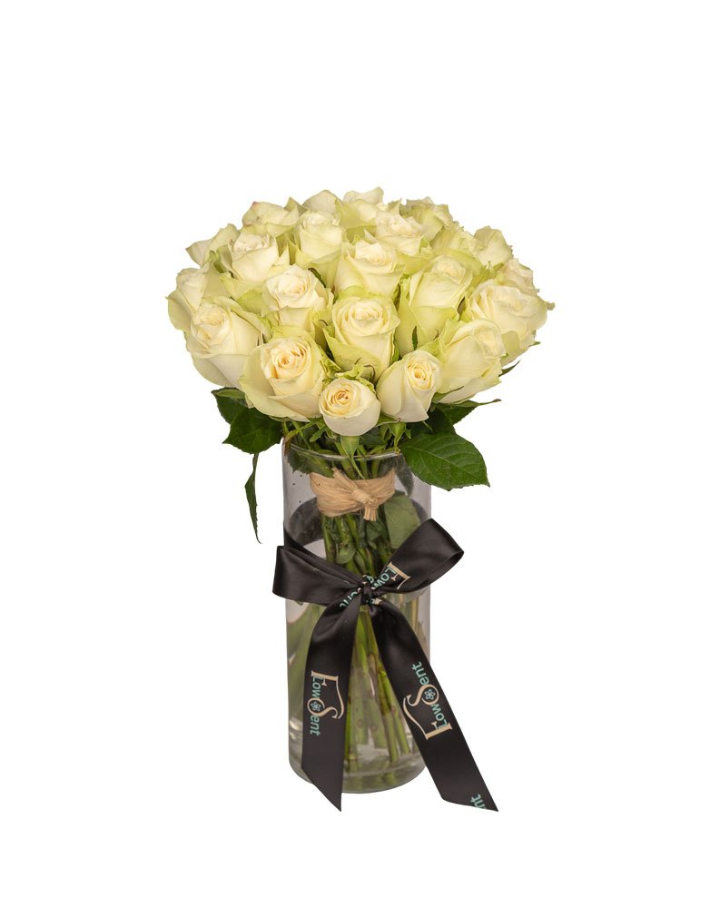 A flawless arrangement of premium imported white roses, artistically placed in a crystal-clear vase. Each petal whispers grace and serenity, creating an atmosphere of refined beauty. Perfect for making a timeless statement, this bouquet embodies purity in its most elegant form.